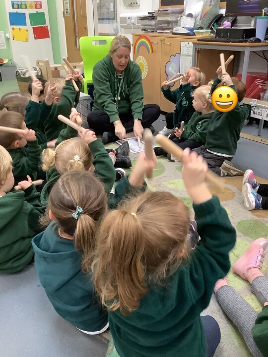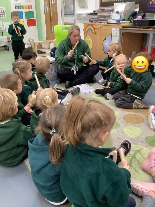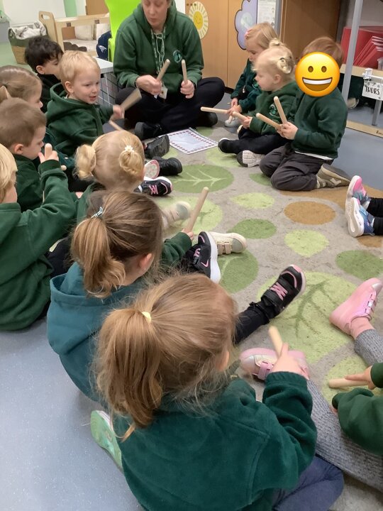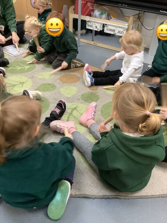 This week, the Daisies had fun exploring various sounds. They used wooden blocks to create both quiet and loud banging noises, and then they sang "5 Fat Sausages," making some big 'bang' sounds as the sausages popped. They loved discovering all the different sounds they could make!