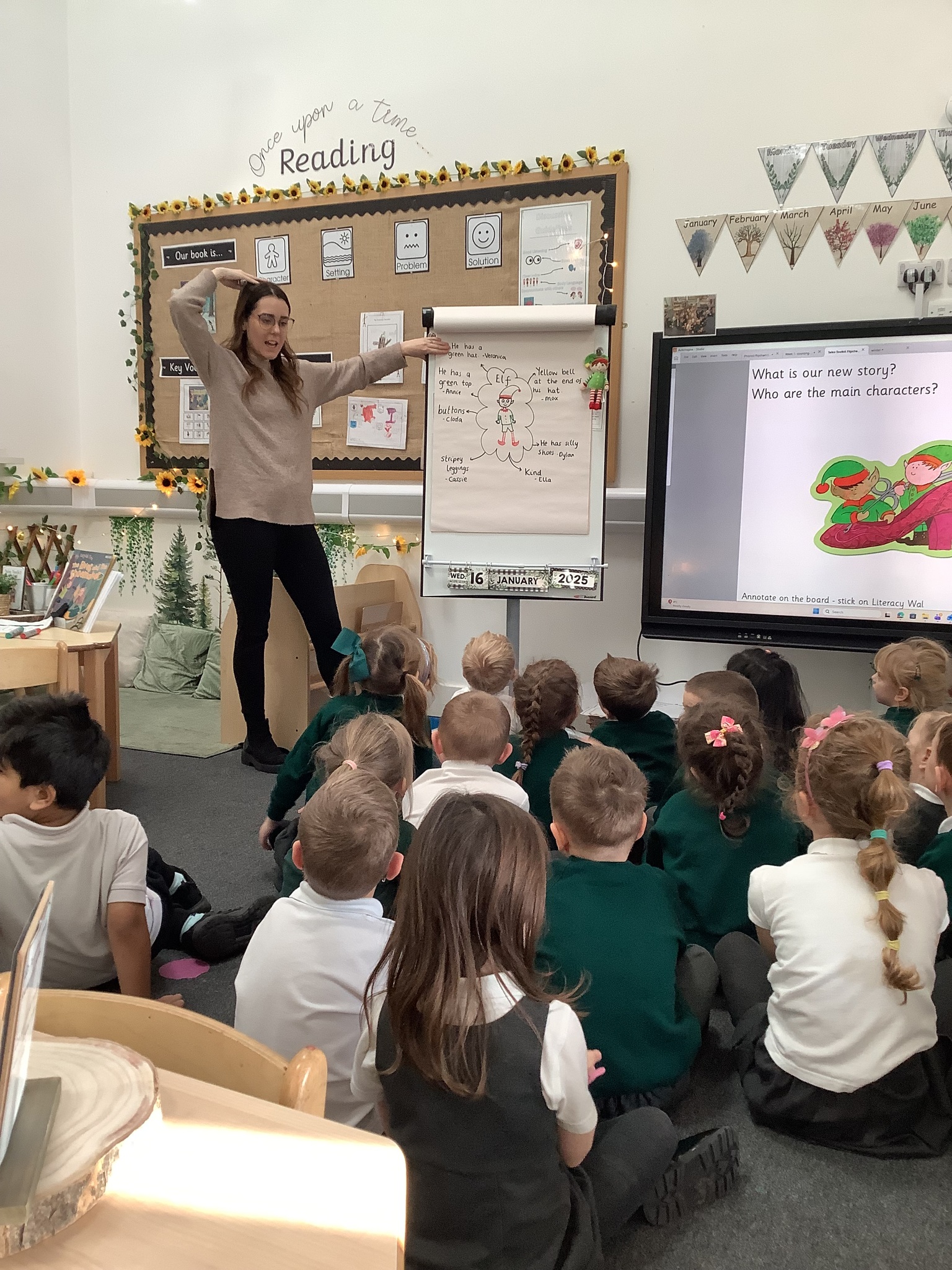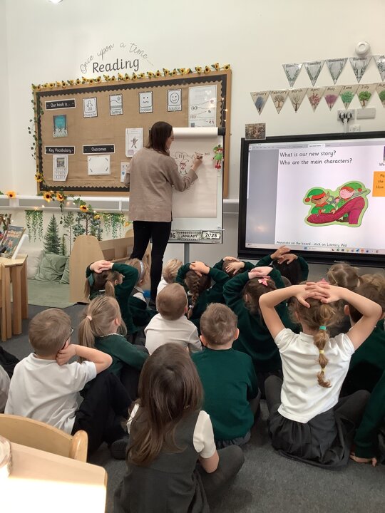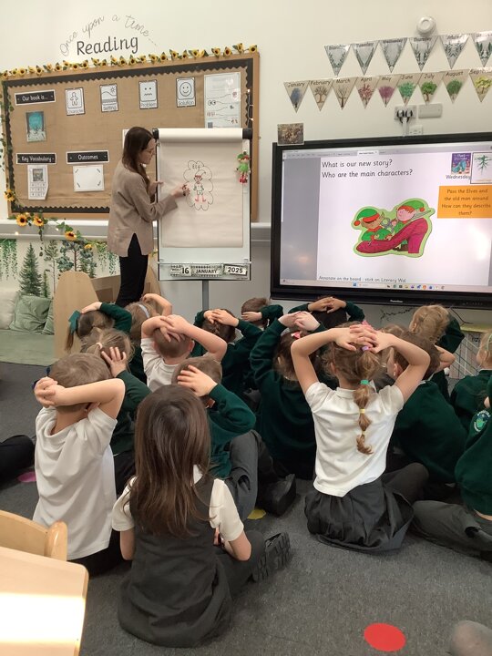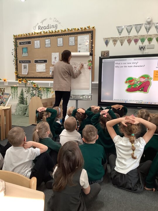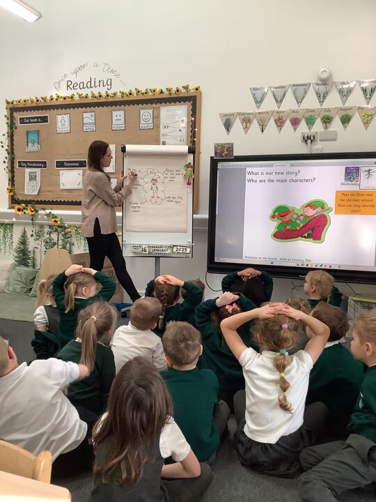 In Sunflowers we have been learning all about a new story"Elves and The Shoemaker". The children have been using lots of describing words to help complete our tales toolkit lesson of describing the new characters. "Kind", "stripey leggings", "buttons", "green top" and "silly shoes". We then completed this in our books!