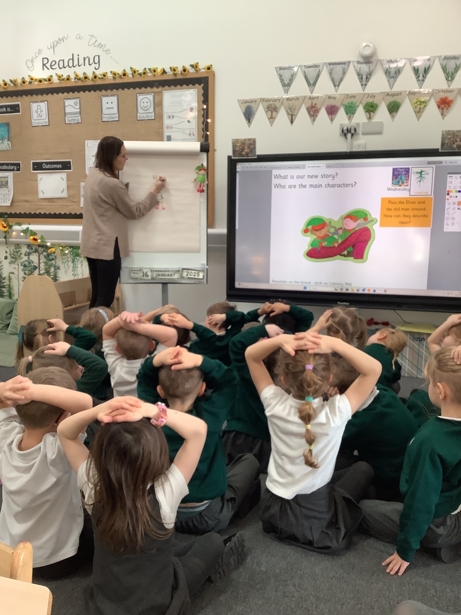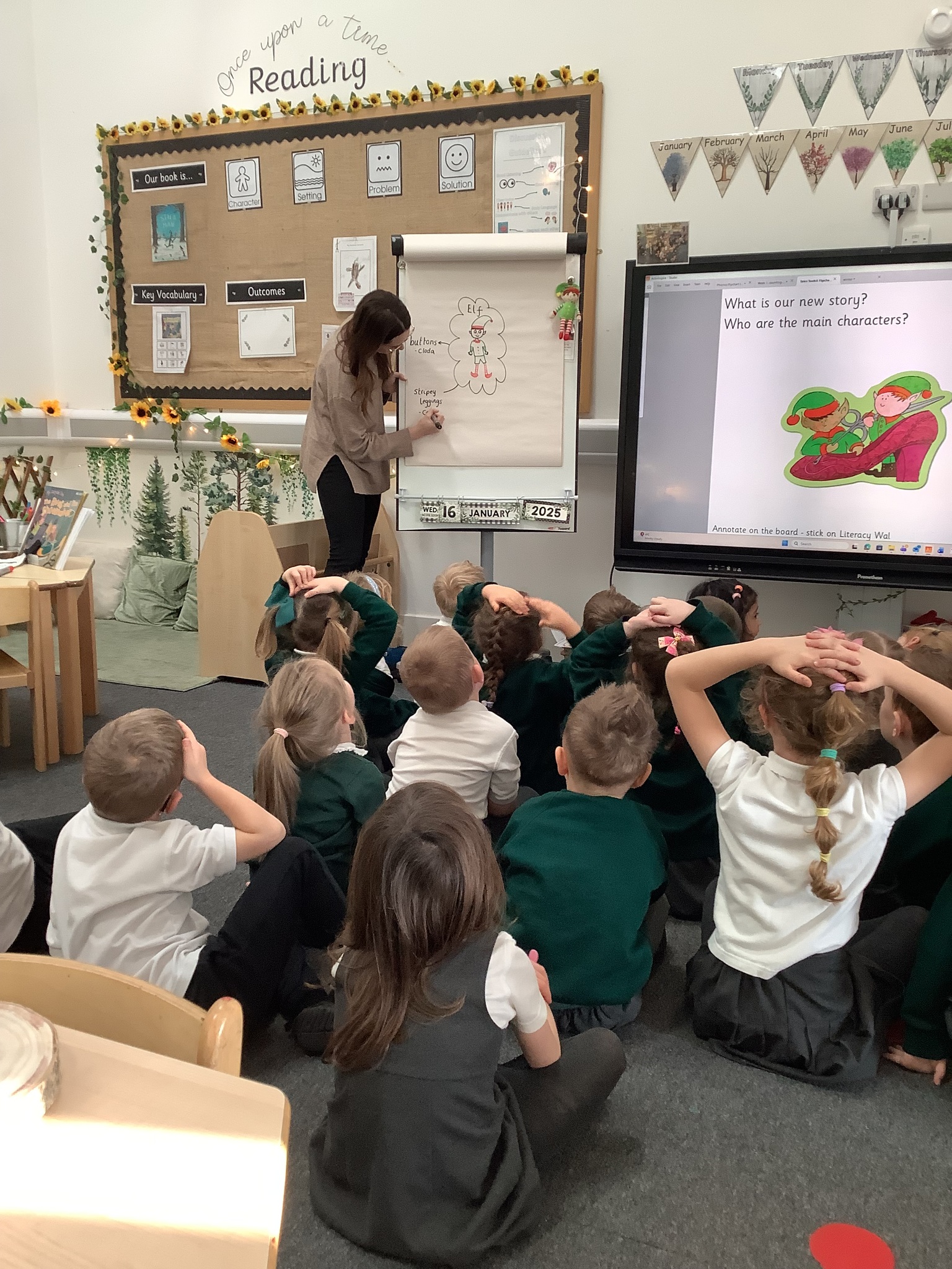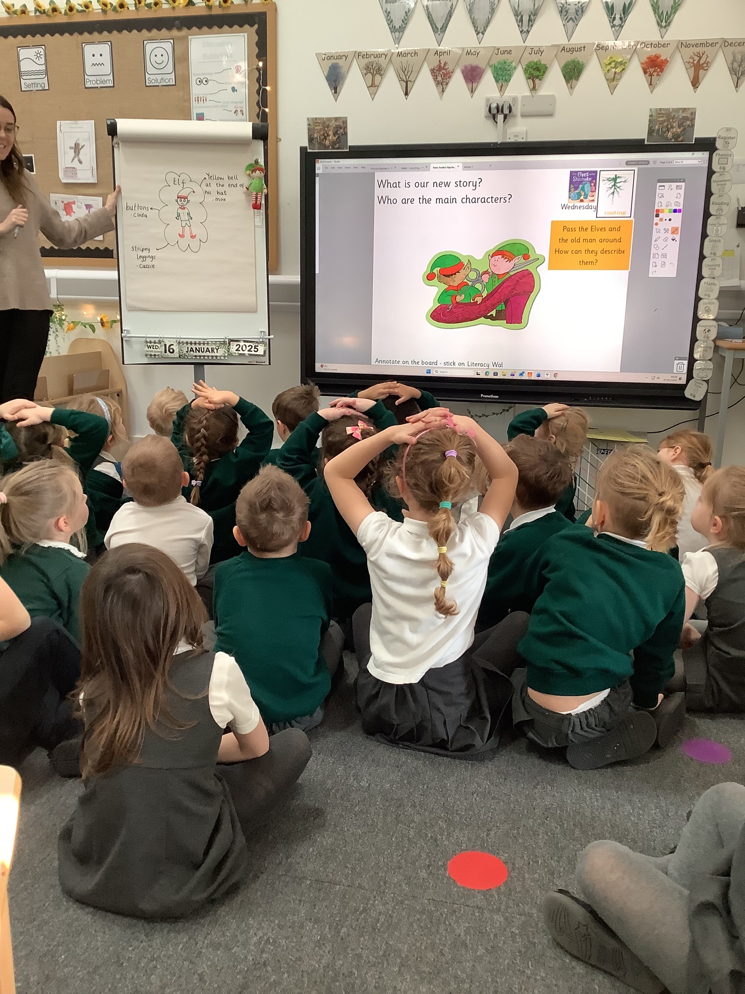 In Sunflowers we have been learning all about a new story"Elves and The Shoemaker". The children have been using lots of describing words to help complete our tales toolkit lesson of describing the new characters. "Kind", "stripey leggings", "buttons", "green top" and "silly shoes". We then completed this in our books!